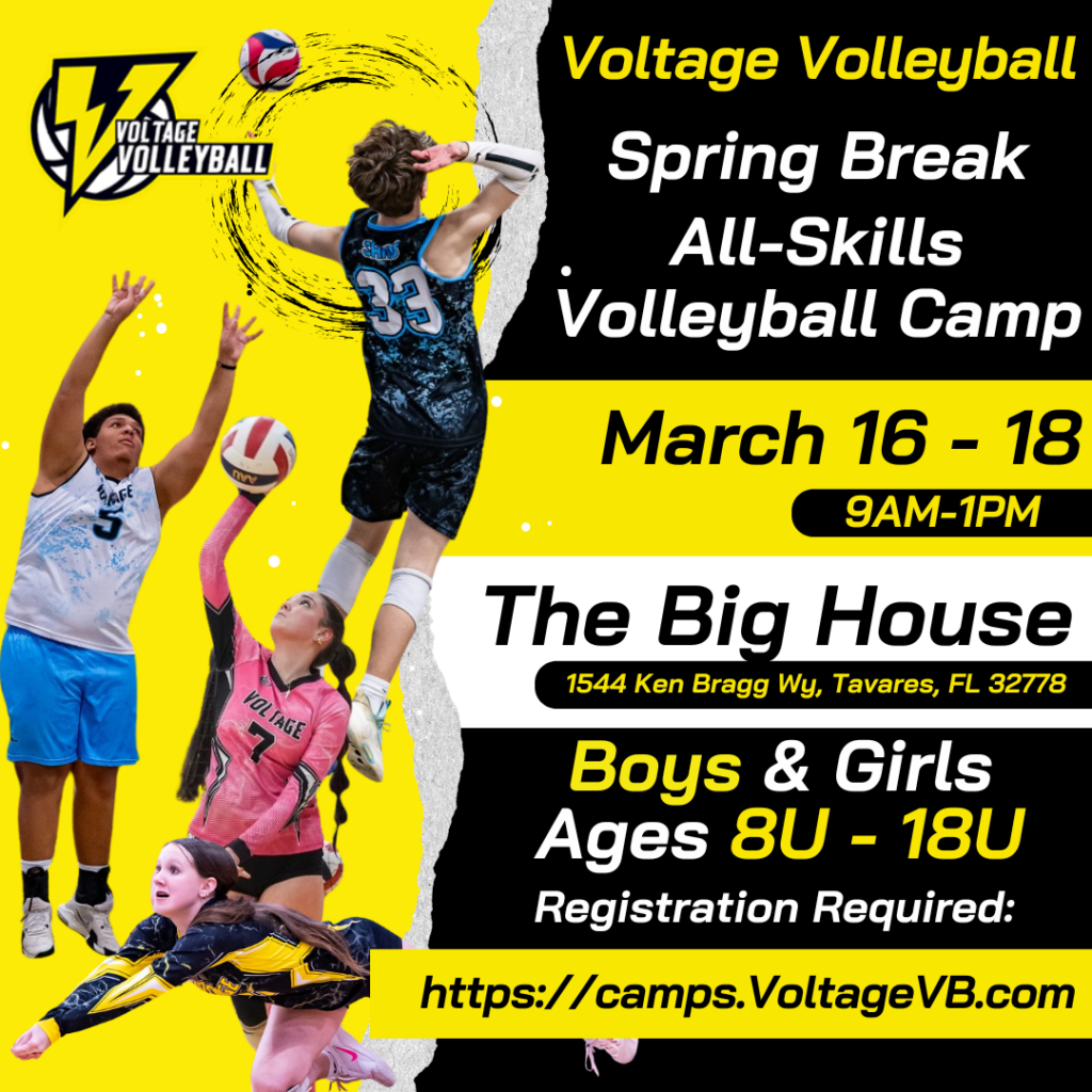 Voltage Volleyball, located in the heart of Eustis in Lake County, Florida was established to provide an opportunity for kids, at all levels, to develop an appreciation and understanding of the sport of volleyball. Our team of coaches and trainers strive to provide a positive atmosphere that encourages players to expand their skill and level of play through dedication, teamwork, commitment, and sportsmanship in a competitive and family-oriented environment.